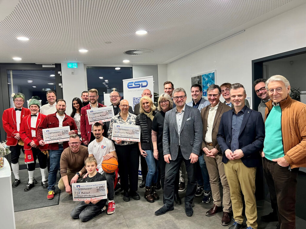 Gleich vier Institution freuten sich über Spenden zur Jubiläumsmusiknacht: Jugendzentrum M24 mit Tobias Stockner; TSV Mühldorf mit Vorsitzenden Christian Kühl, Geschäftsführer Tobias Seifinger; Stadtkirche mit